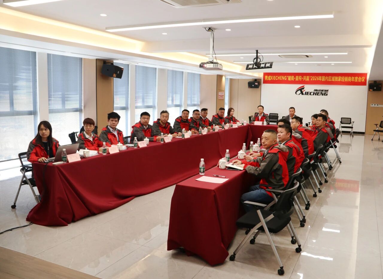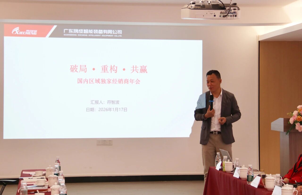 17 января 2026 года в мультимедийном конференц-зале на четвертом этаже торжественно прошла ежегодная конференция эксклюзивных региональных дистрибьюторов Xiecheng «Прорыв · Реструктуризация · Беспроигрышный вариант» 2026 года. Компания Guangdong Xiecheng Intelligent Equipment Co., Ltd. Генеральный директор Xiecheng г-н Фу Чжибо, директор по маркетингу г-жа Тан Иньсян, заместитель генерального директора производственного центра г-н Лу Сяосин, руководители ключевых отделов и представители эксклюзивных дистрибьюторов из основных регионов страны собрались, чтобы обсудить новые стратегии развития и совместно открыть новую главу сотрудничества.